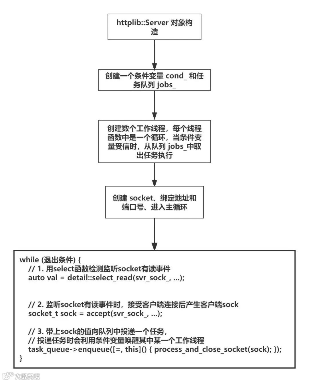 1. 介绍一下整个服务的程序结构。该同学的描述是主线程开启监听 socket 之后,进入无限循环调用 accept 处理客户端连接,accept 返回新的客户端 socket 后封装成任务交给线程池处理,线程池的线程共用一个队列,当有任务产生时,从任务队列中取出任务执行。我首先询问了一下,主线程如何通知工作线程有任务,该同学说使用条件变量,并且每次只唤醒一个工作线程,此时我扩展了一下问题,假设我某次投递了 N 个任务,我想同时唤醒 N 个线程(N 小于工作线程数目),这样要如何设计?