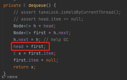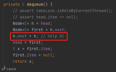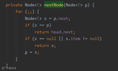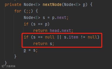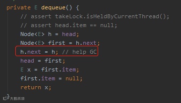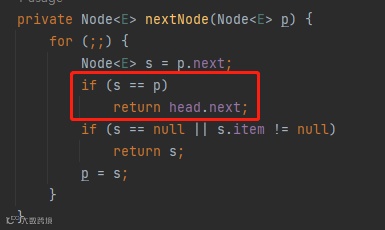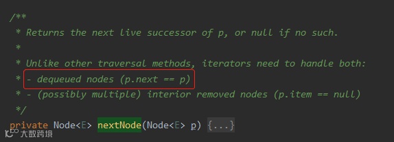 答案就藏在这个方法的注释部分:dequeued nodes (p.next == p)