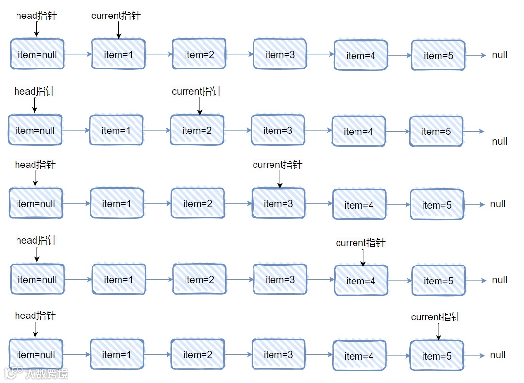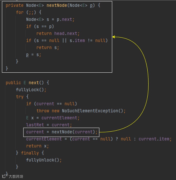 current,这个变量是在生成迭代器的时候就初始化好了的,指向的是 head.next: