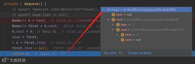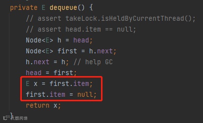 拿到 first 的 item 值,作为方法的返回值。然后再把 first 的 item 值设置为 null。