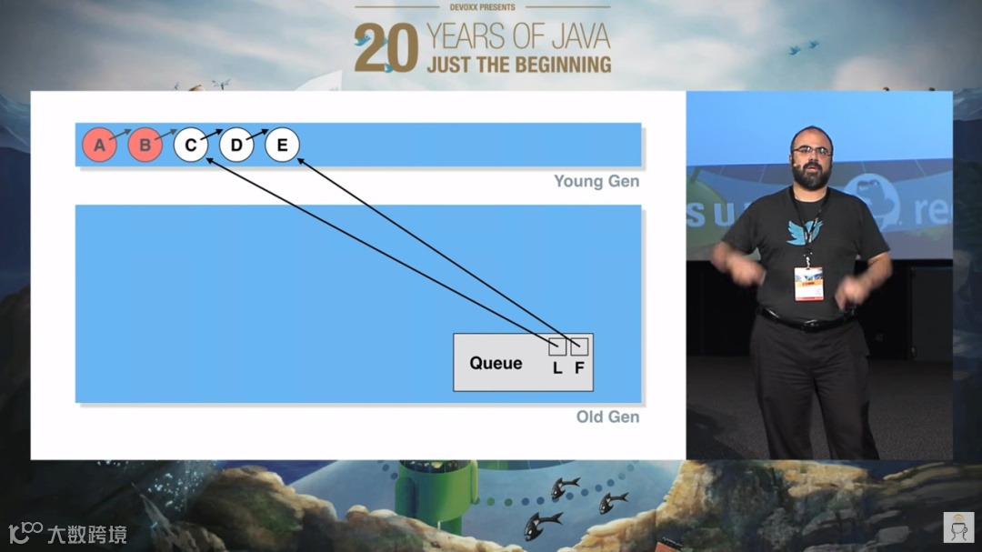 我看了一下这个视频,应该是 2015 年发布的。因为整个会议的主题是:20 years of Java, just the beginning: