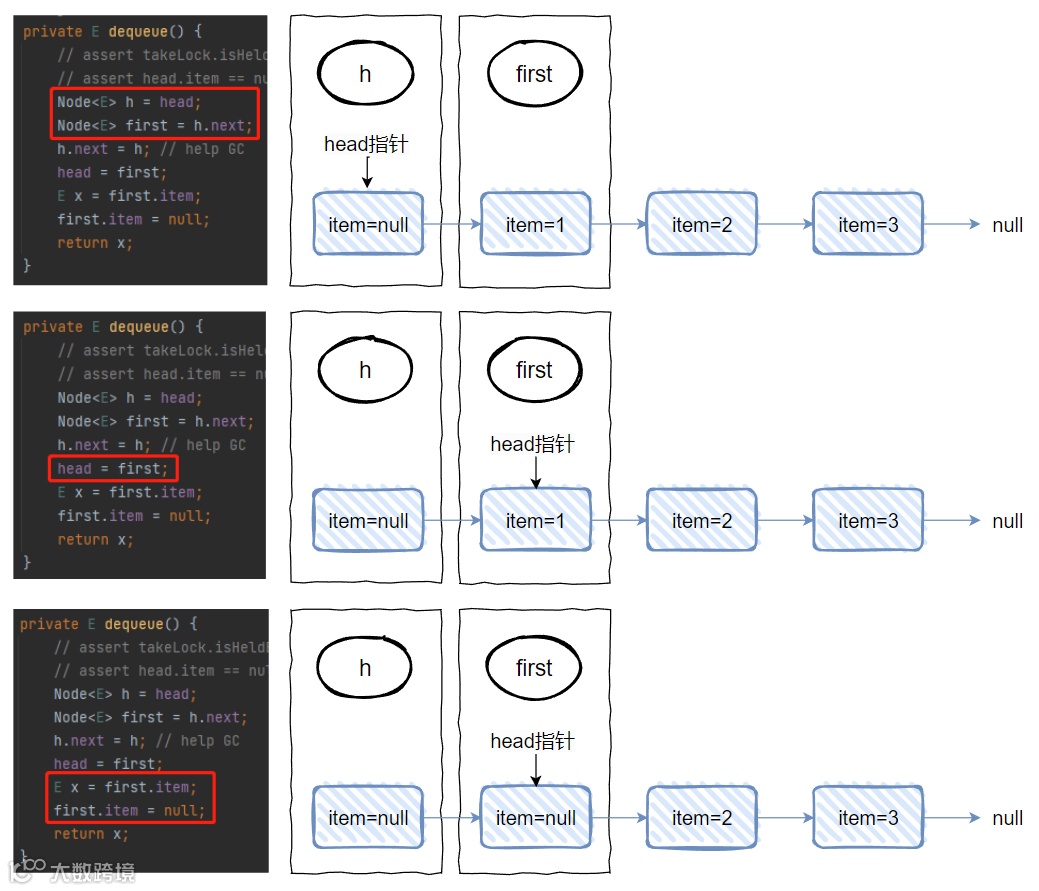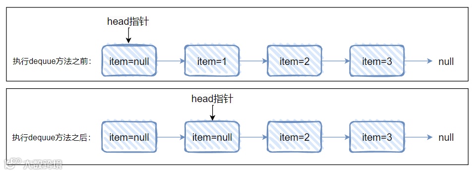 这个方法就是从队列的头部,删除一个节点,其他啥也不干。