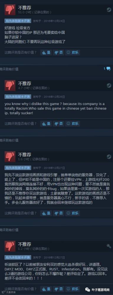 值得注意的是,这款游戏在Steam的整体评价并不高,只有65%。而主要原因之一是,国区玩家刷了大量的差评,大部分都是因为官方封锁了大陆的IP,玩家如果不使用代理服务器的话将无法登陆。而另一方面,这款游戏并未停止在国区销售,并且还自带中文。国区玩家固然对这款游戏有很多不满,但它的热度并未因此降低。