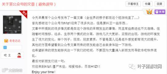 另外,由于大量新人的涌入,百度贴吧也出现了很多老玩家的抱怨。为了避免新人被这篇文章带偏,贴吧吧主老老达达专门发了一个置顶帖,详细解释了一下这篇文章中存在的问题。