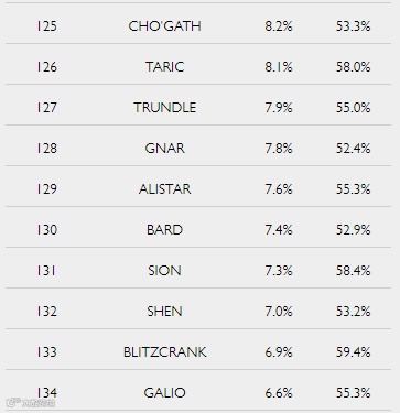 胜率加成垫底的10名英雄,机器人和纳尔的上榜或许会让人有些意外。