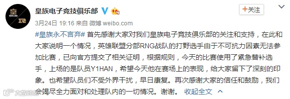 虽然此前有不少带节奏的声音喊着“Mlxg已经离开RNG”、“香锅与队友不和私自离队”,但随着香锅回到基地训练,这些谣言也不攻自破。不过就在大家都以为将在上周RNG对阵QG的比赛中香锅将会上场时,等来的却不是香锅,而是RNG官博的一份声明。