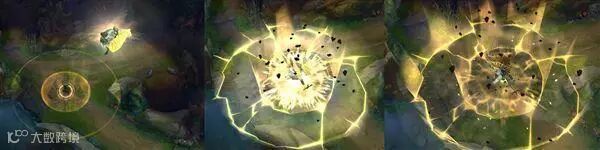 加里奥后跳蓄力,以进行一次史诗级的强力打击。在短暂的延迟后,他会向前冲锋,对敌人造成伤害和击飞效果。加里奥的冲锋会在与一名敌方英雄或地形产生碰撞后停下。