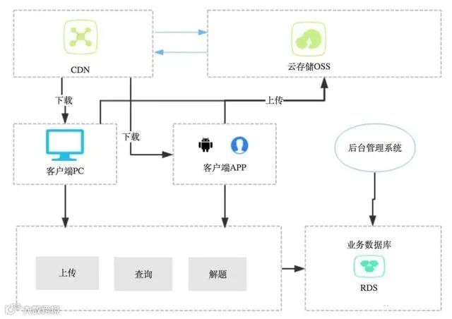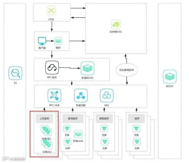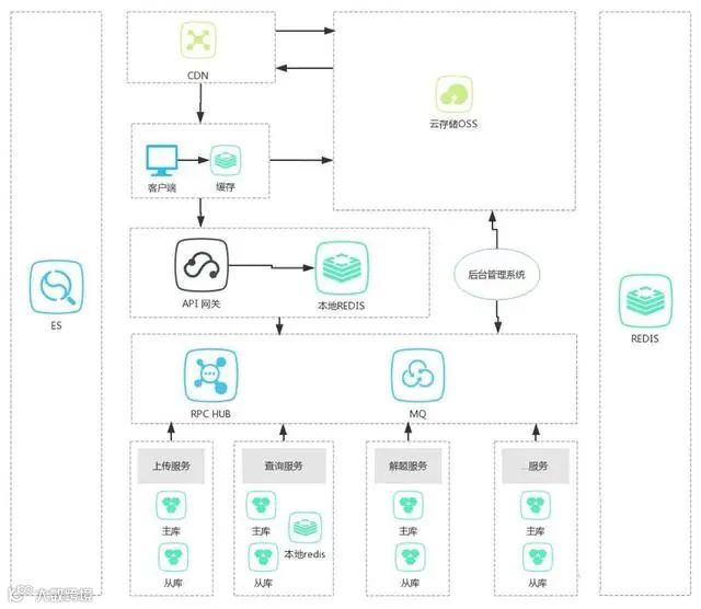 如上图所示,这种模式较单库单应用模式多了一个CDN、一个云存储OSS(七牛、又拍等雷同)。一个典型的应用流程(以用户上传、查看图片需求为例)如下:
