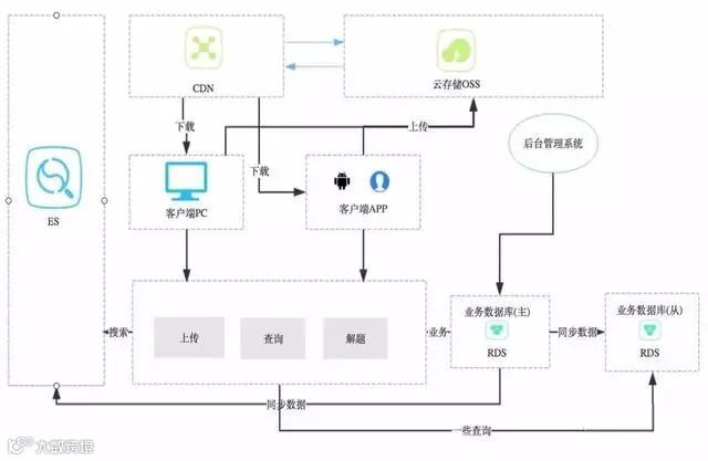 如上图所示,这种模式较单库单应用模式与内容分发模式多了几个部分,一个是业务数据库的主从分离,一个是引入了ES,为什么要这样?都解决了哪些痛点,下面具体结合业务需求场景进行叙述。