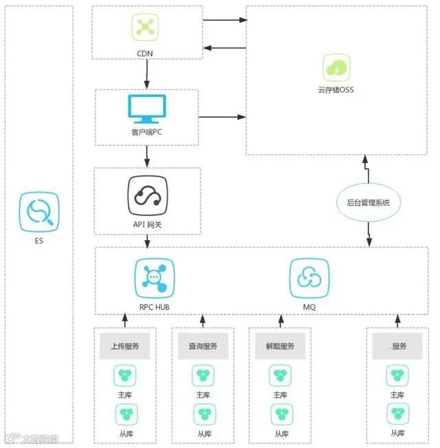 如上图所示,我把业务分块,做了垂直切分,切成一个个独立的系统,每个系统各自衍化,有自己的库、缓存、ES等辅助系统,系统之间的实时交互通过RPC,异步交互通过MQ,通过这种组合,共同完成整个系统功能。 那么,这么做是否真的解决上述问题了呢?不玩虚的,一个个来说。对于问题一,由于拆分成了多个子系统,系统的压力被分散了,而各个子系统都有自己的数据库实例,所以数据库的压力变小。