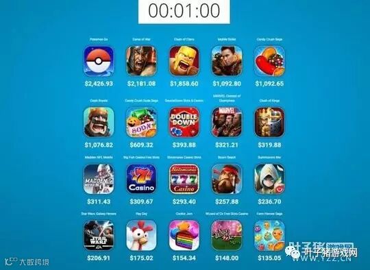 MZ旗下的《战争游戏》平均每分钟收入2167.83美元,紧跟在《精灵宝可梦Go》之后,而同样都是在2012年上架的《部落冲突》与《糖果粉粹传奇》则排在第三第四位,每分钟分别赚1847.31与1847.01美元。