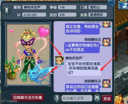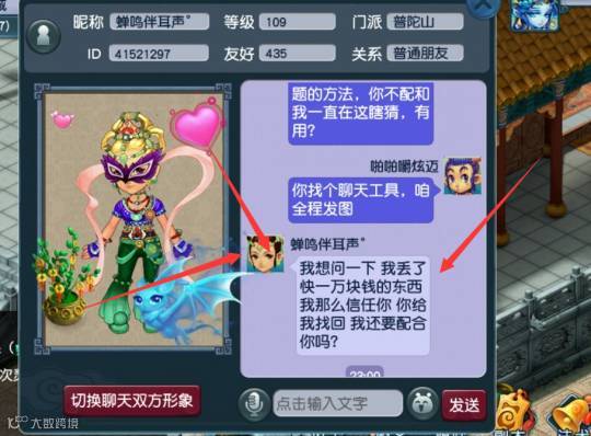 他不是说 BB被我申诉回去了吗,那我只好发个传音问问区里的人有没有看到这只BB了,下面上结果