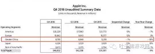 这次财报最“亮眼”的是大中华区营收,为87.85亿美元,比去年同期125.18亿美元下滑了30%。
