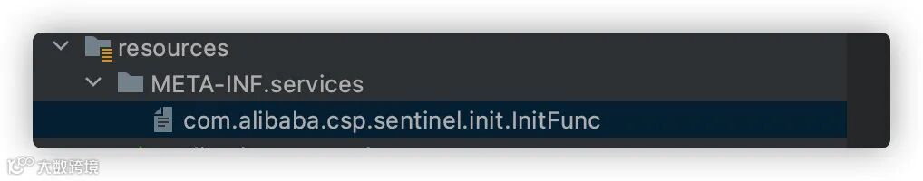 实现SPI,在resources目录的META-INF/services下新增名为com.alibaba.csp.sentinel.init.InitFunc的文件,内容写上我们自己实现的类名,比如我的com.irving.demo.init.DemoClusterInitFunc。