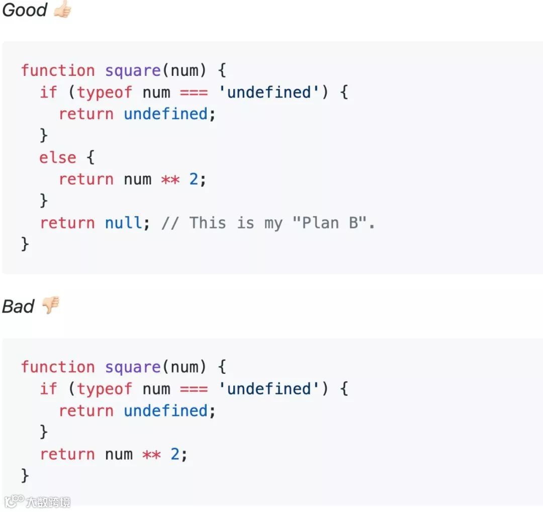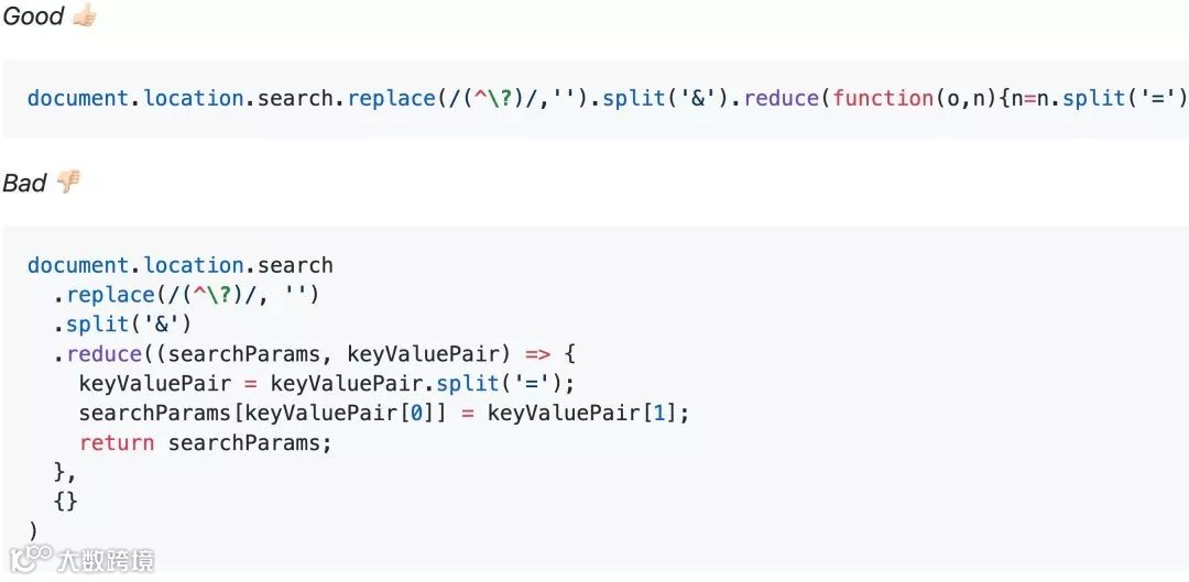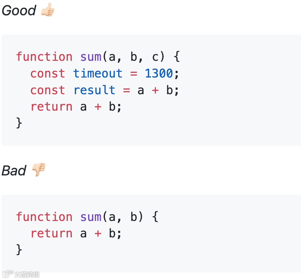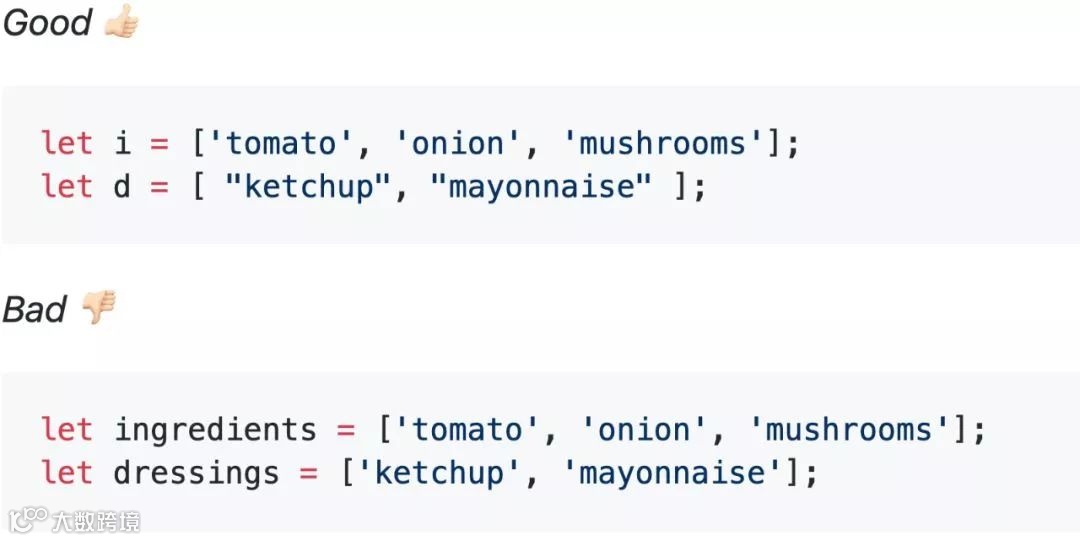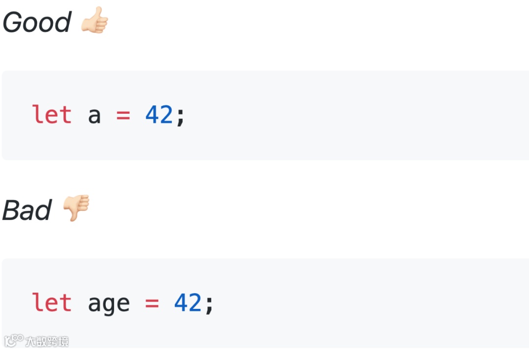如果我们键入的东西越少,那么就有越多的时间去思考代码逻辑等问题。如下所示,「Good」表示遵循该规则的示例,Bad 表示没遵循该规则的示例。
