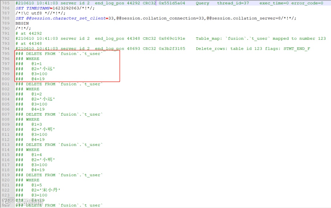 比如,执行delete语句,删除的数据有多少条,binlog中就记录有多少条伪sql