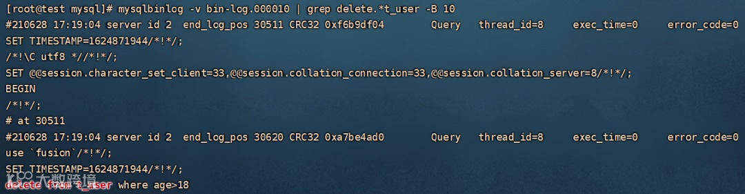 mysqlbinlog -v --start-datetime='2021-06-10 10:35:00' --stop-datetime='2021-06-10 10:45:00' bin-log.000004 | grep t_user
