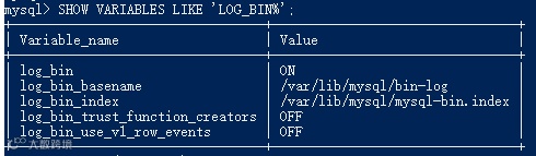 从图中可以看到log_bin是处于ON的状态,说明binlog是开启的