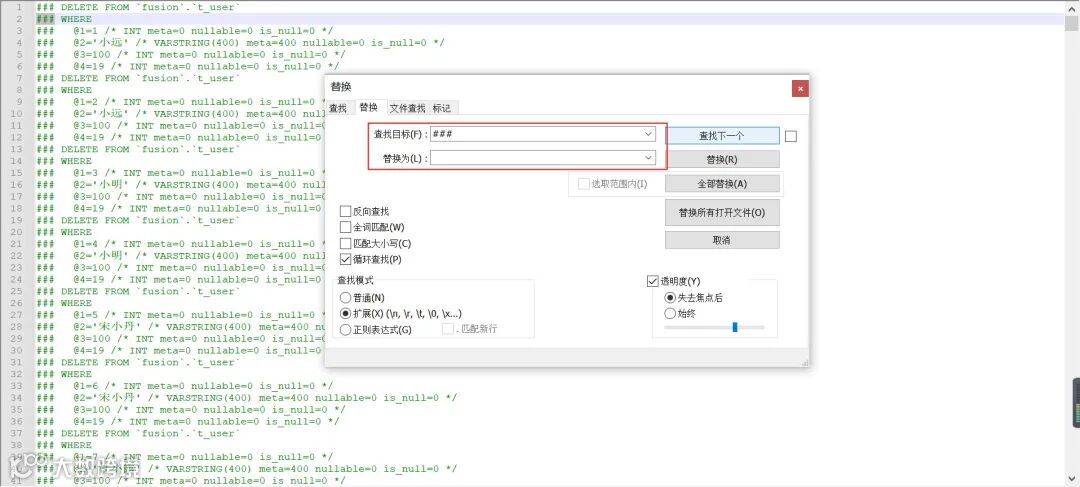 日志中包含的sql是一些伪sql,并不能直接在数据库执行,我们需要想办法把这些伪sql处理成可在数据库执行的真正的sql