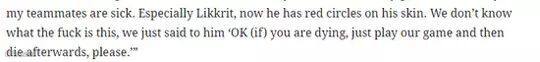 上面这段话大意为:我的队友病了,尤其是Likkrit,现在他身上已经长满了小红点,我们TM根本不知道这是啥玩意,只能跟他说没事。而且我们告诉他:“哥们,如果你真要死的话也请你先打完比赛!比赛结束后你爱咋咋的,拜托了。”