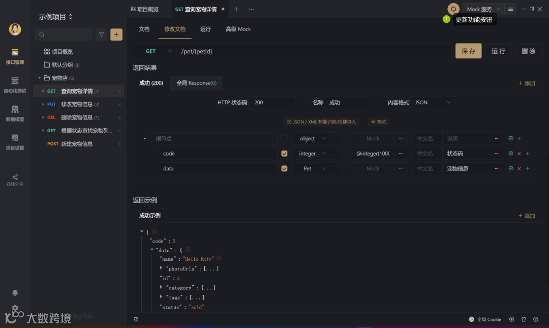 Apifox 为此提供了同步功能,一旦接口数据有更新发生,就会即时同步更新并通知到项目内所有成员。