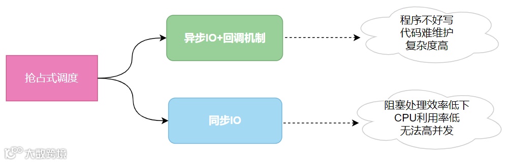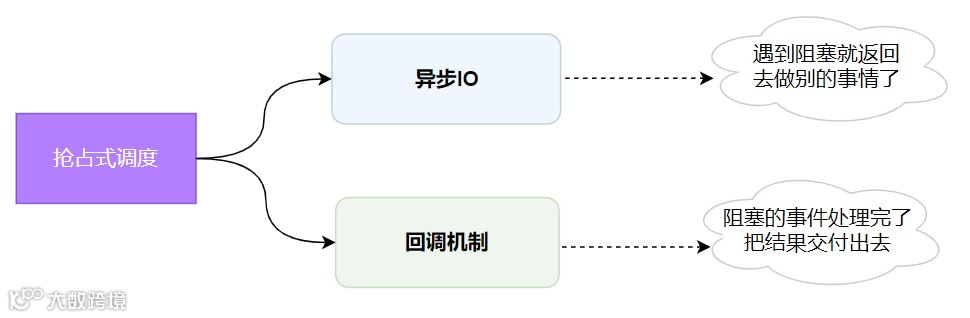 对于IO密集型任务,在抢占式调度中也有对应的解决方案:异步+回调。