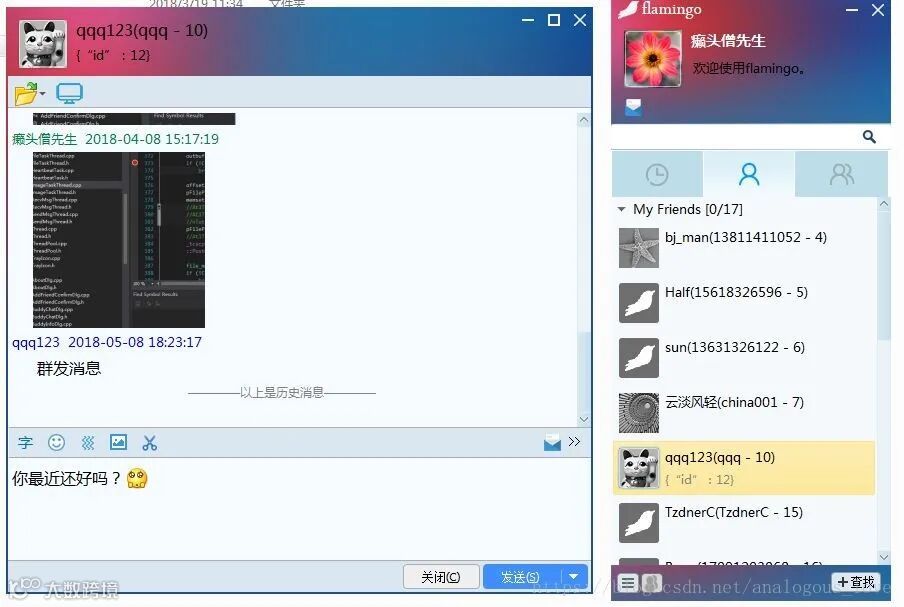 关于 Flamingo 的介绍和最新源码: https://github.com/balloonwj/flamingo 更新日志:https://github.com/balloonwj/flamingo/issues/1