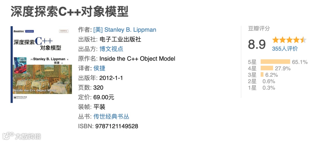 这本书专注于 C++ 面向对象程序设计的底层机制,包括结构式语意、临时性对象的生成、封装、继承,以及虚拟——虚拟函数和虚拟继承。这本书让你知道:一旦你能够了解底层实现模型,你的程序代码将获得多么大的效率。对于 C++ 底层机制感兴趣的读者,这是一本让你大呼过瘾的绝妙好书。