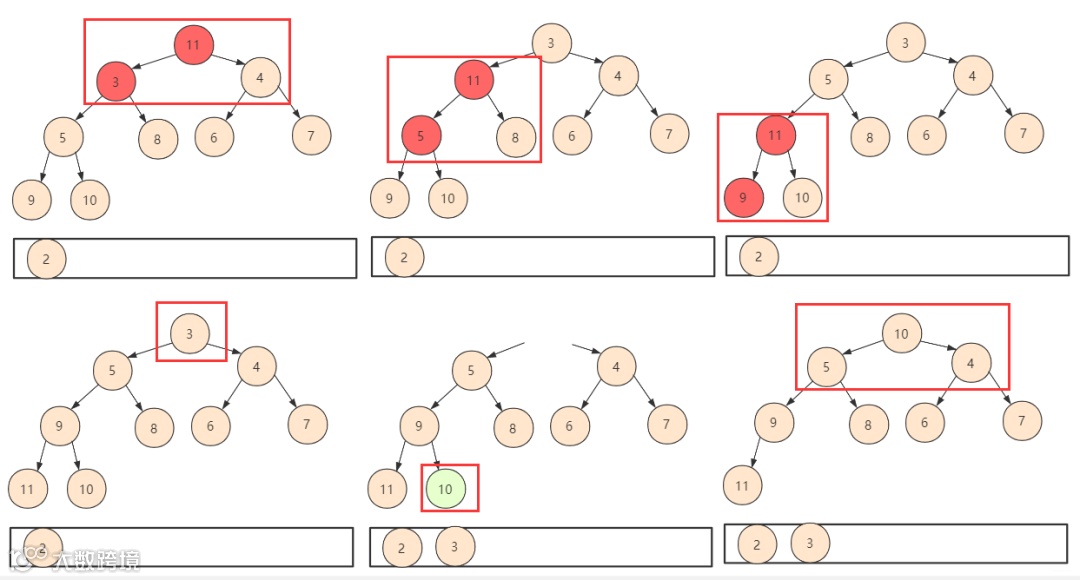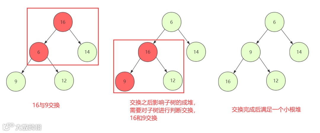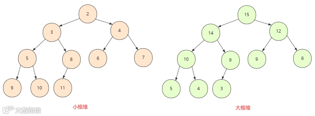 如果所有节点「小于」孩子节点值,那么这个堆叫做「小根堆」,堆的最小值在根节点。