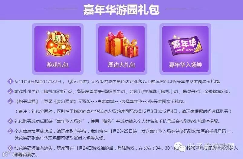 活动奖励:嘉年华入场卷、周边大礼包、游戏礼包
