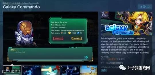 根据页面介绍,这款游戏售价为10元、无中文。游戏包含接近200个关卡,玩家将在游戏中扮演保护地球的卫士,也可以召唤更多英雄加入战斗。实际上这款游戏早已作为手游登陆了App Store,中文名定为《银河异客》,游戏的介绍为“单机版守望魂斗罗”,同样设置了内购英雄。