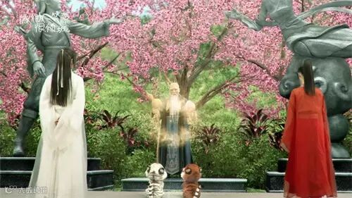 在片头MV中,开篇便是两只萌的让人心都软了的小老虎,在各自主人(杨洋所饰演的一笑奈何与郑爽饰演的芦苇微微)的带领下,在桃花仙的见证下喜结连理。而这软萌的小老虎,原型赫然是《新倩女幽魂》网游中的灵兽虎咪,在最近曝光的一笑倾城资料片CG中亦有它的身影哦!