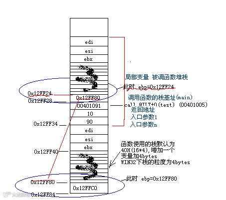 (所谓__cdecl调用由调用者负责恢复栈,调用者负责清理的只是入栈的参数,test函数自己的堆栈空间自己返回时自己已经清除,靠!一直理解错)