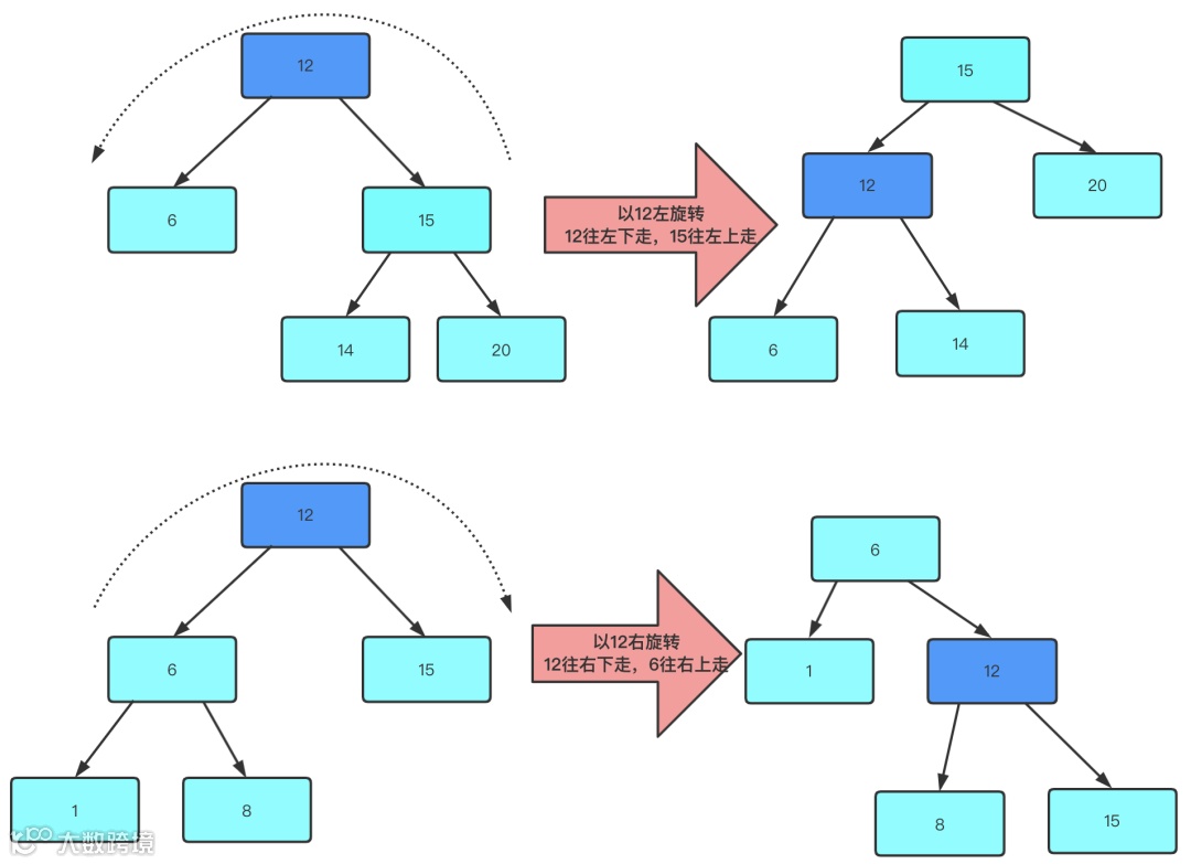 平衡二叉树跟红黑树。平衡二叉树要求任意一个节点的左深度跟右深度差值绝对值不能大于1,如果插入后超过了1会通过左右各种旋转来更改连接的变化,最终实现左右深度差不大于1的这个要求。