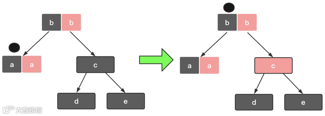 给关注节点 a 的父节点 b 添加一个黑色,这个时候节点 b 就变成