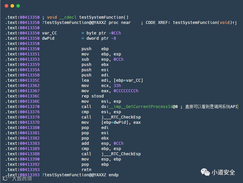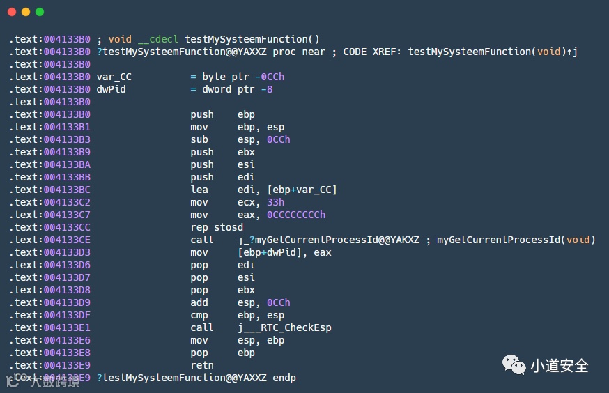 下图展示上面函数通过调用系统函数实现的汇编代码。大家可以直接通过展示的系统函数去分析功能。