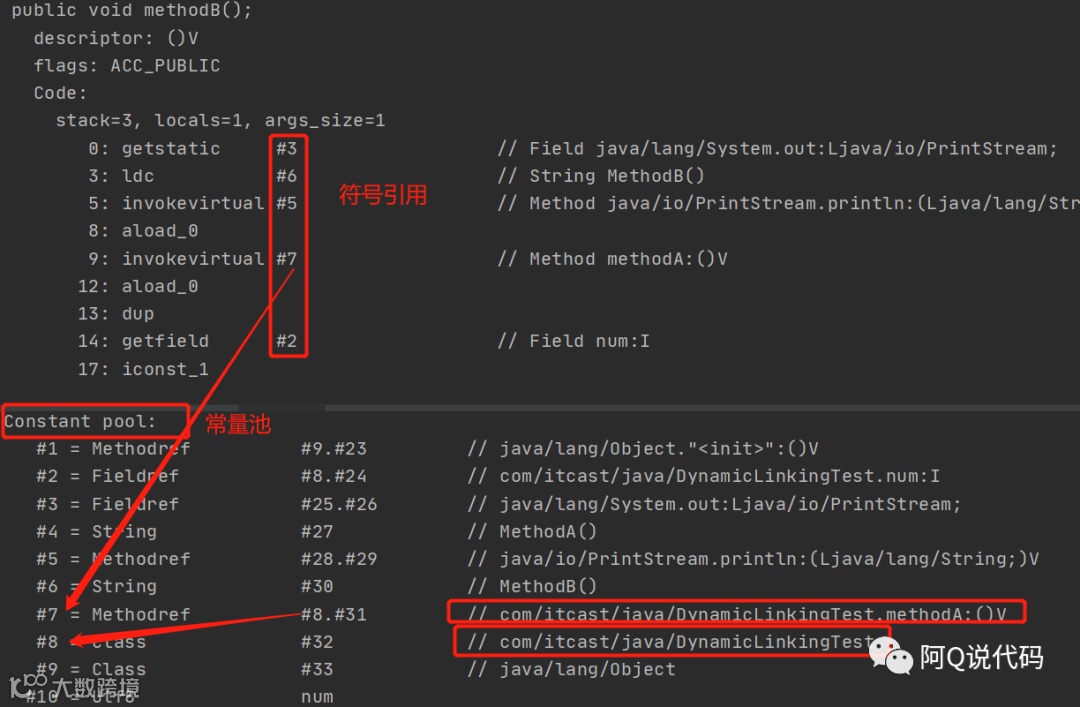 为什么字节码文件需要常量池?因为字节码文件需要数据支持,通常这种数据会很大,以至于不能直接存放到字节码中,换一种方式,可以将指向这些数据的符号引用存到字节码文件的常量池中,这样字节码只需使用常量池就可以在运行时通过动态链接找到相应的数据并使用。