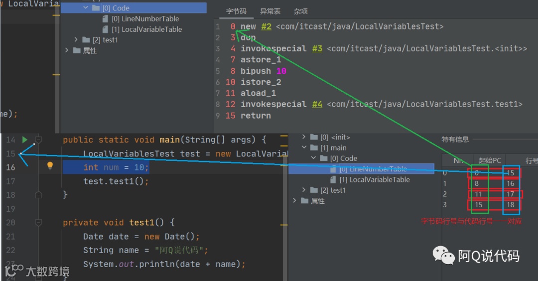 阿Q特地制作了一张动态图来说明一下字节码指令执行时PC寄存器、局部变量表和操作数栈的运行过程: