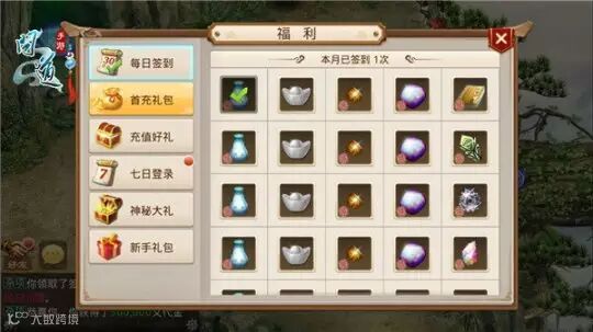 9、每日签到有奖励。道友们每日登陆游戏进行签到,就能获得签到奖励。