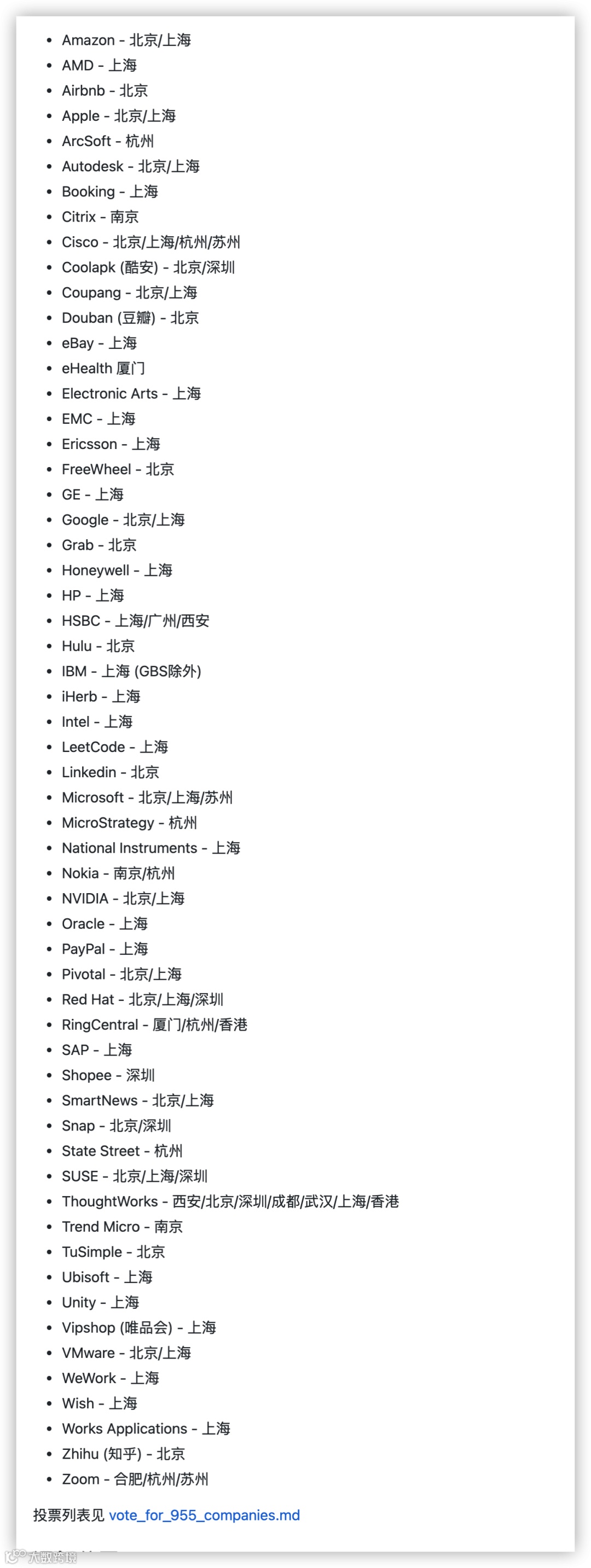 最后给大家奉上955加班少的企业名单,如果有想要跳槽的朋友,大家可以参考一下。