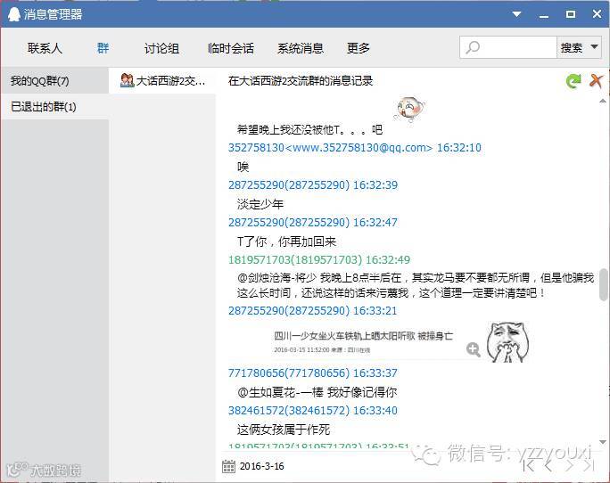 似水流年:我之前加的大话西游2交流群,不是工作室的群,管理在联系我看群里的时候我就已经下班在回家的路上了,晚上和朋友吃饭,到八点才到的家。