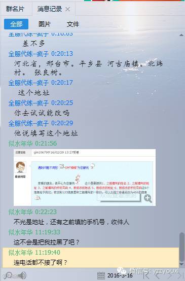 旧时若老:那您站在我这个角色说1龙马不知道在谁那里,员工也留下地址给他了2.代练费被退回3差评4.被这样恶意宣传