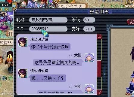 这个号是楼主买来的,和他的关系是夫妻,跟他说了一下这号是藏宝阁买来的也挺客气的,后来我说不知道怎么离婚他也说以后教我,总之蛮好的一个人吧,对话看上去也挺正常的。