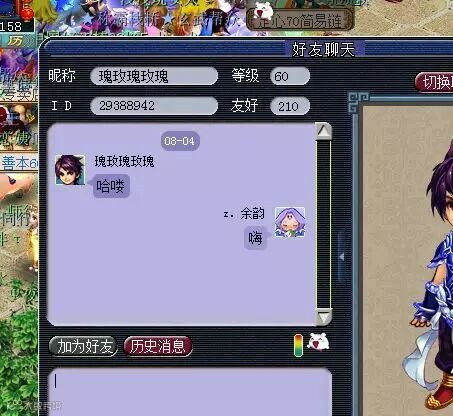 这是楼主第一天买号上线后别人M我的,再看看上面的对话。原主人好像送了剑侠客一顶绿帽子啊。。。