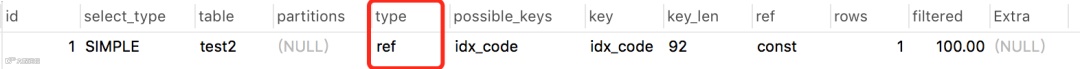 explain select * from test2 where code = '001';结果: