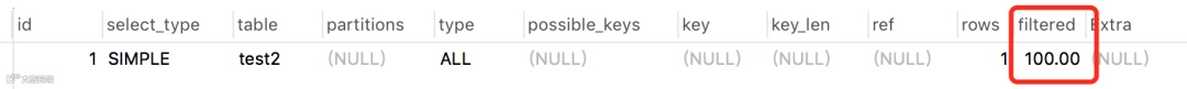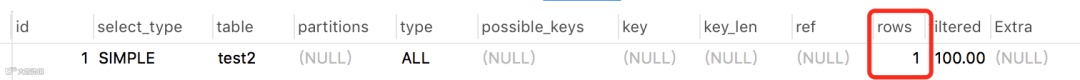 rows显示了检查的估计行数,rows× filtered显示了与下表连接的行数。例如,如果 rows为1000且 filtered为50.00(50%),则与下表连接的行数为1000×50%= 500。