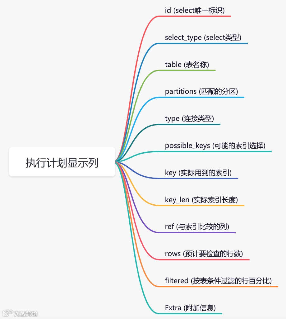 当EXPLAIN与可解释的语句一起使用时,MySQL将显示来自优化器的有关语句执行计划的信息。也就是说,MySQL解释了它将如何处理该语句,包括有关如何连接表以及以何种顺序连接表的信息。 -