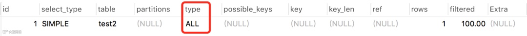 explain select * from test2;结果: