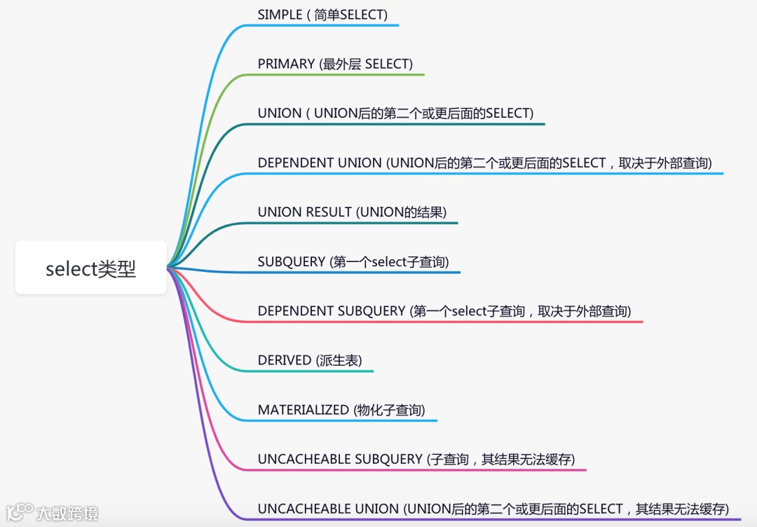 该列表示select的类型。具体包含了如下11种类型: