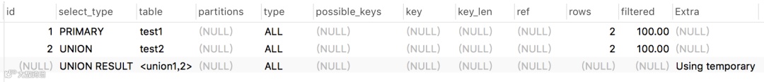 | UNION RESULT | 从UNION后的表获取结果集 |